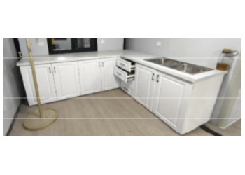 | Kitchen Cabinet | L Shape Kitchen Cabinet with Basin, MDF Board + Marble Table Top | ![]() |
